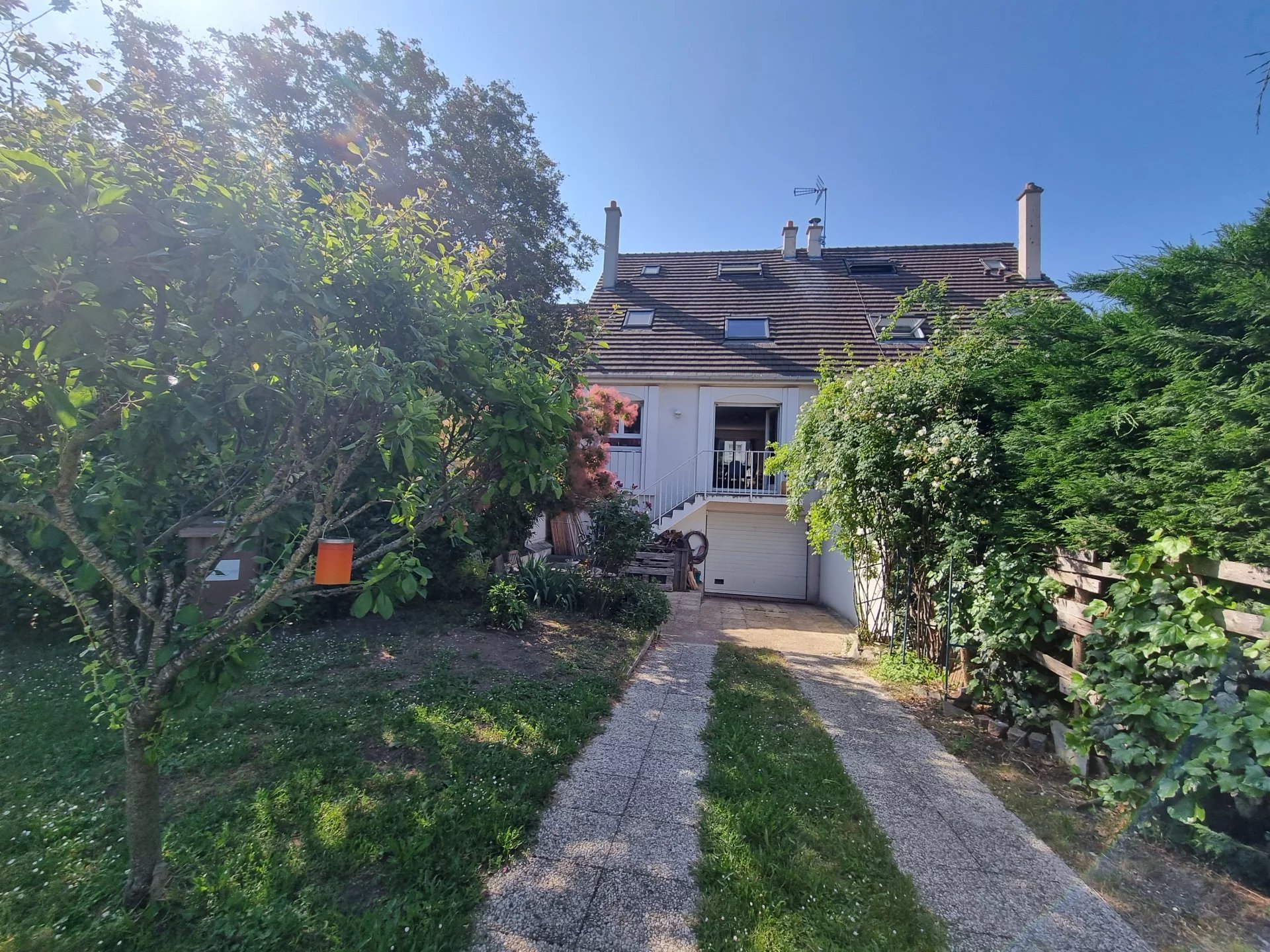 Quartier résidentiel et familial au calme à 2 pas des écoles, de la British School et à 7min du centre, maison surélevée de 115m² Carrez avec garage, soit 150m² de surface utile. En rdc surélevé, une entrée, séjour traversant avec cheminée donnant sur la terrasse et le jardin, cuisine ouverte et rangements. A l'étage, un palier dessert 3 chambres, SDB avec wc, des combles sont aménagés en 4ème chambre. Rez-de-jardin : une chambre avec SDD/w.c et accès au garage. Une terrasse et jardin complètent cette charmante maison familiale. Le + : un autre jardin commun (ASL) aire de jeux sécurisée pour les enfants, accessible depuis le jardin privatif.